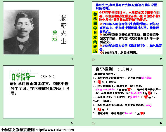 课件简介:人教版语文八年级下册《藤野先生》作者鲁迅 ppt转发课件,《藤野先生》作者鲁迅 上传者:lkk123