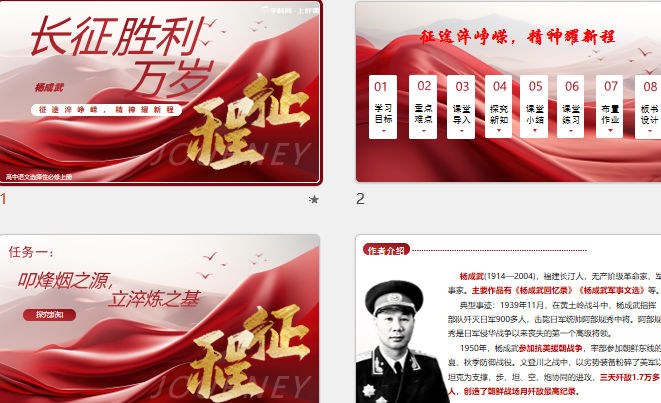 课件简介:统编版语文高二选修上长征胜利万岁 ppt改编课件,教研组集体备课结晶,经全组老师实践,一致认同好用 上传者:zuiaibenben
