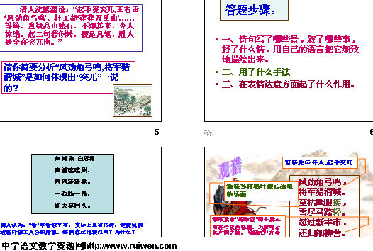 上传者:sxfjeam 邮箱:czsxf@163.com 课件简介:ppt制作,改编课件, 该课件思路清晰,重点突出。重点分析了诗歌类型的炼字,总体还算不错。